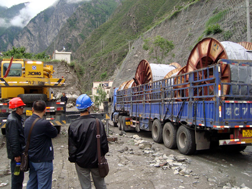 2011年6月6日四川省強波電力工程有限公司董事長孫波先生與公司主要負責人一行驅車前往汶川,理縣看望戰斗在施工現場的員工,2011年5月公司承建的理縣城網改造工程正緊鑼密布夜以繼日加班加點的緊張施工,此次工程項目主要是通過變電站出線(采用YJV22 3ⅹ300)高壓主電纜,開挖電纜溝,設置電纜井3KM,從老城區跨江到新城進入環網保護柜然后從環網柜出線到電纜分支箱,進入箱式變壓器,現對主城區主要街道,景點,新上400KVA箱變12臺,工程投資500多萬元,城市電網的改造意義重大,改造后將對理縣人民的生活用電,工業生產的用電質量得到大大提高,長遠于未來是一件民心工程,造福的工程,強波公司十分重視工程的建設,抽調了公司的精兵強將,制定了各項措施,確保工程,保質,保量順利竣工,孫總仔細檢查了工地的施工情況和存在的安全隱患,特別是跨江放線的施工組織措施,當天進行了預演,對存在的問題提出了整改通知,晚上孫總與工地員工一起吃粽子共度端午節,工地員工大受鼓舞和感動。大家都決心一定要保質,保量提前完成任務,不辜負公司的希望。 四川省強波電力工程公司 工地記者:劉雨報道 2011年6月10日