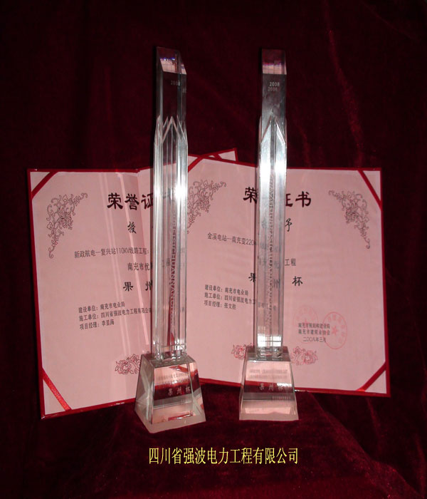 2008年4月18日,四川省南充市建設局在萬泰大酒店召開了2008年建筑業常務理事會并對四川省強波電力工程有限公司等六家企業頒發了經專家組評審的2007年度市優質工程“果州杯”獎。此殊榮是我市建筑業優質工程的最高獎勵也是對我公司2007年工程質量的肯定和鼓勵,我們將不負重望、再接再勵、繼續努力,再創佳績!為我國的電力建設多做貢獻! 四川省強波電力工程有限公司是南充地區唯一的一家具有二級送變電資質的民營企業,強波電力工程有限公司在誠信為本的原則基礎上加強科學管理公司施工勢力雄厚,誠信度高,年年都受到上級部門的嘉獎和投資部門的好評,強波電力工程有限公司不但強化自身建設而且注重社會公益建設對社會的公益活動都積極參加,在2008年1月份公司先后派出300余人前往貴州,云南抗冰搶險,在搶險中四川省強波電力工程有限公司全體員工發揚了強波精神頂風冒雪不畏嚴寒和生命危險,在災區打了一場驚心動魄的抗冰搶險恢復送電的大仗,以驚人的毅力完成了所劃區域的任務讓災區老百姓在大年三十晚上看上了春節聯歡晚會。 百姓臉上的微笑就是對我們最大的鼓勵和安慰同時四川省強波電力工程有限公司也將載入黔南史冊。 圖一:金溪電站——南充變220KV線路工程獲得2007年度優質工程“果州杯”稱號,領獎現場。